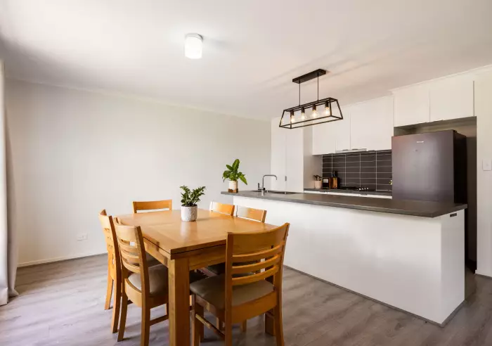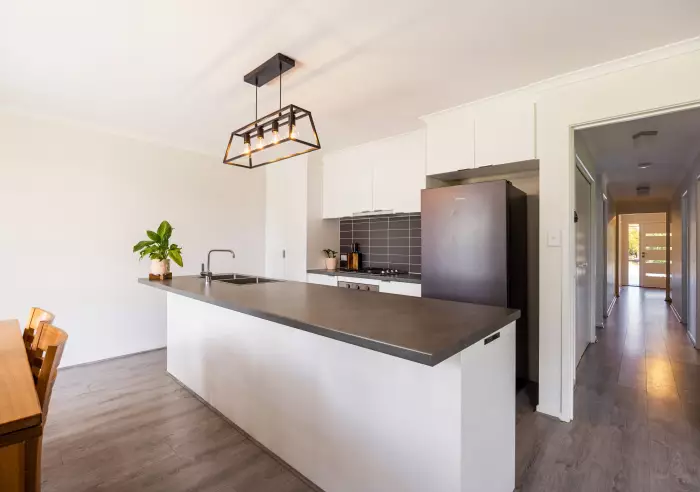 - At the heart of the home, a light-filled family room flows seamlessly into the sleek kitchen, complete with gas appliances, dishwasher, and island bench—perfect for everyday living and entertaining.
