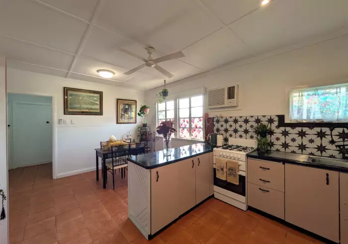 Step inside to a spacious interior where original timber flooring adds a warm, elegant touch. The home is designed for year-round comfort, with four powerful air conditioners strategically placed throughout the main living areas and two bedrooms to provide a refreshing escape from the heat. These are complemented by ceiling fans in all three generous bedrooms, the kitchen, and the living room, ensuring excellent air circulation and comfort in every corner of the house.