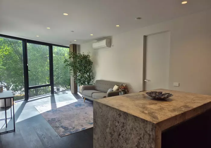 • Expansive floor-to-ceiling double-glazed windows capturing leafy vistas across Wesley College and St Kilda Road
