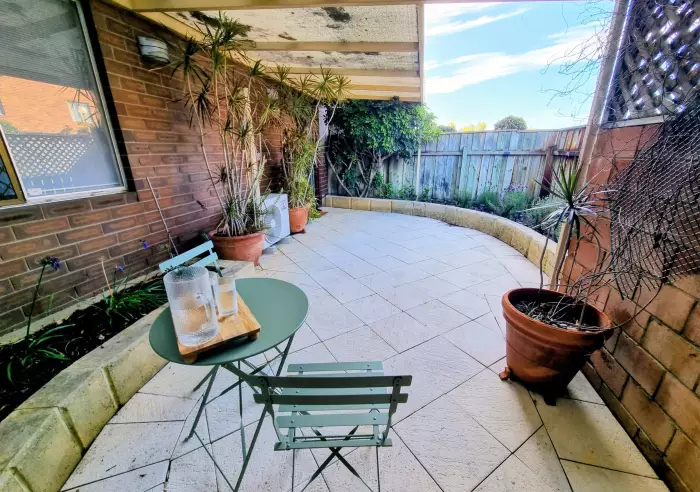 Step inside and be greeted by a light-filled, spacious open-plan kitchen and dining area that forms the heart of the home. Enjoy exclusive access to your own 13m² private courtyard, featuring beautiful easy-care gardens, a garden shed for extra storage, and stylish limestone paving—the perfect outdoor retreat for relaxing or entertaining.