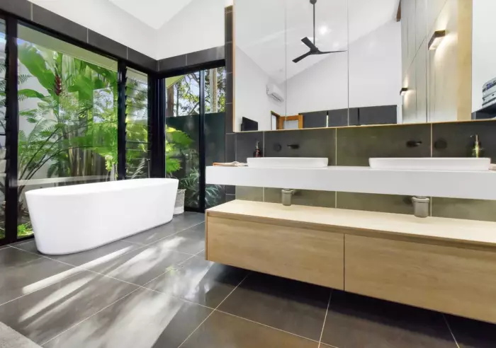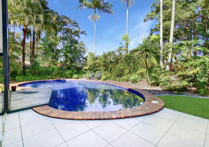 Including a breathtaking master suite on the ground floor featuring soaring ceilings, a private tropical garden outlook, designer ensuite and expansive custom walk-in robe. Four additional freshly painted and carpeted bedrooms with built-ins occupy the upper level.