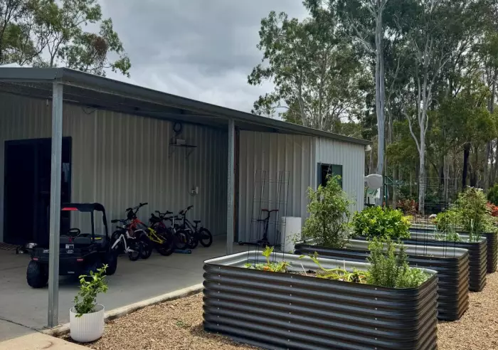 Double 9x9 shed (currently used as granny flat but can be multi functional), 3 m awning and 15x7 carport for vehicles, toys and boat storage