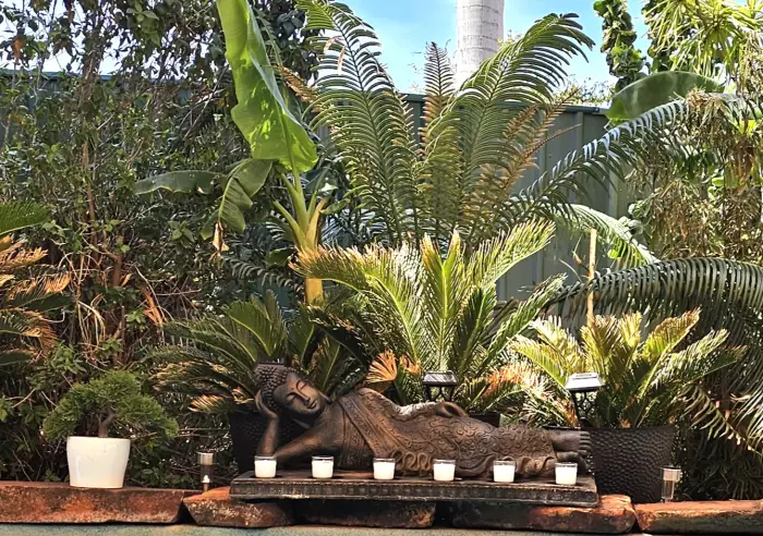 As you enter the front entry gate, you are surrounded by lush green grass and a magnificant well established Tropical Garden, filled with mature coconut/Date bearing palms all of which are on a full reticulated watering system.