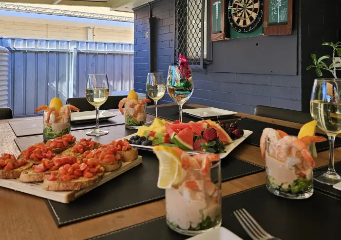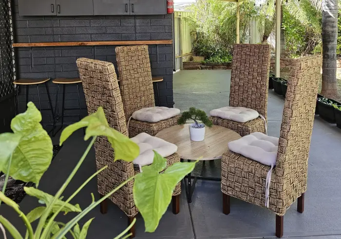 The front Patio covers a large shaded entertainment area for an afternoon beverage with mates or for the morning cuppa and newspaper in the shade.