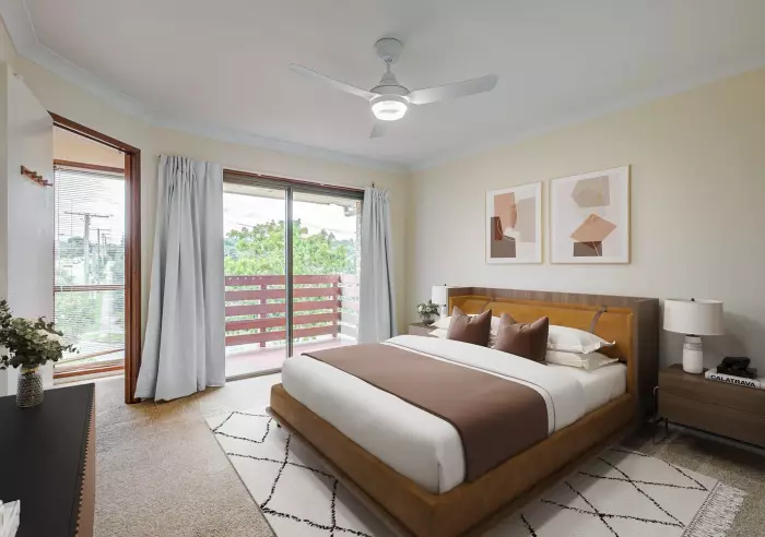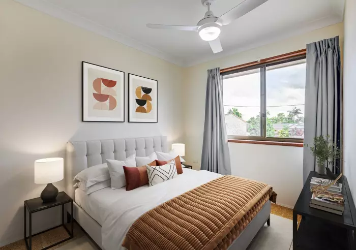 - Two bedrooms with ceiling fans