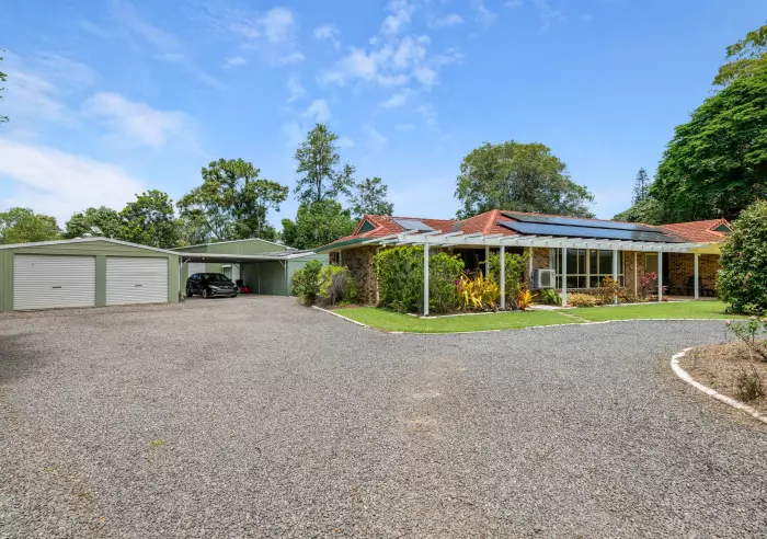Privately and peacefully positioned well back from the road, down a long driveway, with a circular turn you will come to this unique property which offers the blend of privacy, natural beauty and a restful lifestyle set on a level and fully useable 4,124 m2 block. Ultra easy to maintain with so much additional infrastructure in one of the sought after acreage pockets of Glasshouse Mountains with a sense of seclusion immediately upon entering the property.