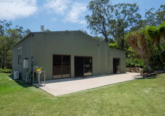 The property backs onto a kangaroo sanctuary and is visited daily by an array of native animals, including kangaroos, wallabies, kookaburras, peacocks, magpies and a resident bush turkey. A seasonal creek adds to the natural charm.
