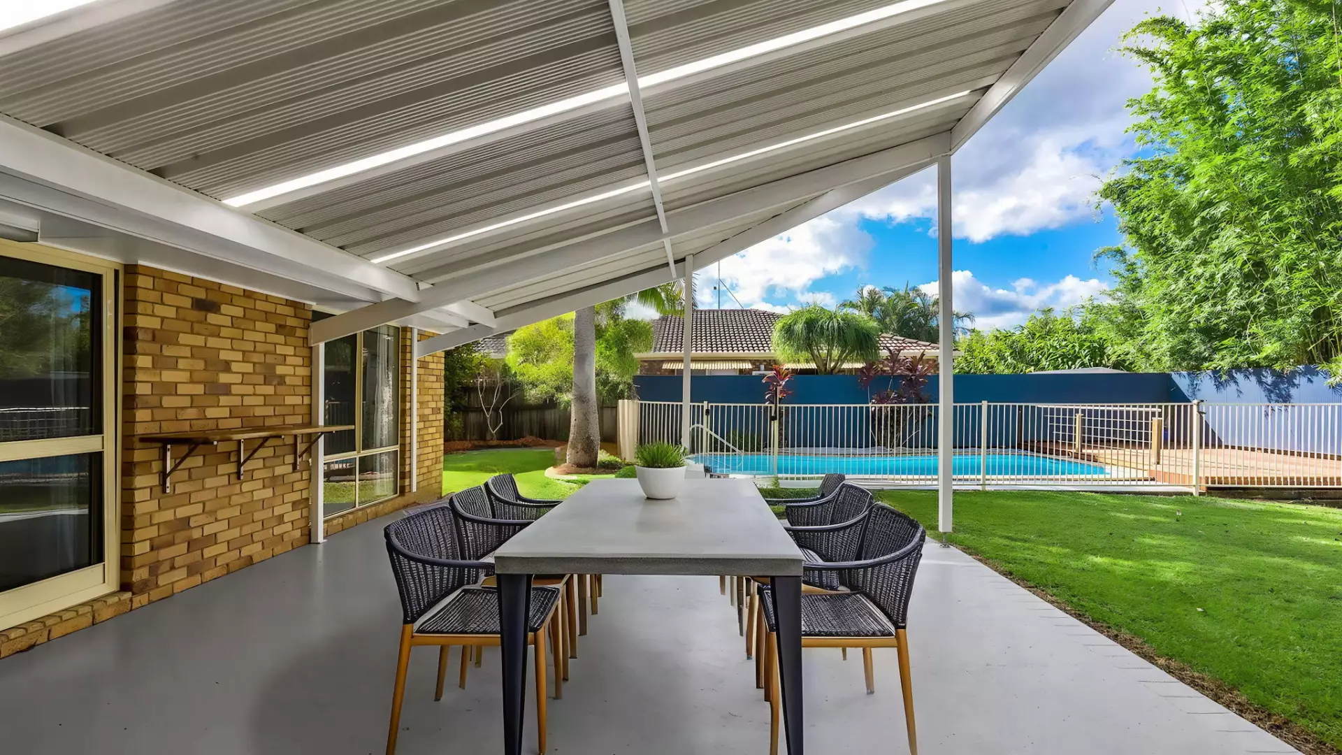 Step outside to your own private oasis, featuring a sparkling pool with a large timber deck, and a covered outdoor entertaining area with a pitched roof that welcomes natural light, making it the perfect spot to enjoy your morning coffee or host guests.