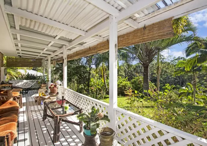 Front Verandah overlooking the front of the property providing a scenic view while relaxing and listening to the abundant sounds of the native birds. Provides morning sunrise views.